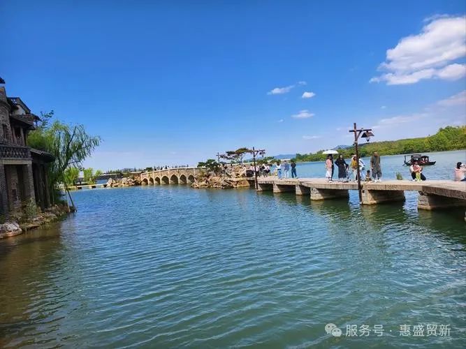 有人循着茶香钻进老茶馆,在氤氲雾气里细品龙井酥的绵密;有人提着裙角掠过石桥,将笑影投进潋滟的湖光。转角处常遇惊喜——蓝印花布染坊前,几双手正合力拓印春日的纹样;紫藤垂落的廊檐下,此起彼伏的快门声正捕捉掠影的光斑。无需刻意组织,偶遇时递过的小点心、雪梨茶,还有花墙下突然叠起的搞怪合影,都成了时光里最鲜活的注脚。