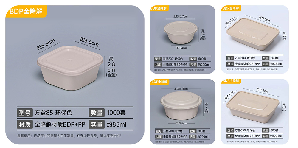 是的,它依然是您熟悉的**塑料餐盒**,轻便实用,却不再背负环境负担。采用**全生物降解材料,弃置后可在自然条件下分解为水和二氧化碳,从源头减少白色污染。