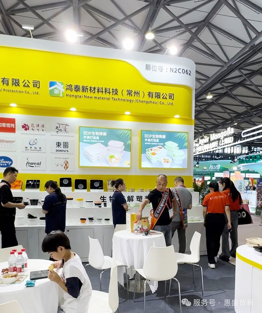 展会现场,我们的展位前始终人头攒动,尤其是最新推出的生物降解塑料餐盒,成为全场焦点之一。这款产品以其环保特性、实用设计和过硬品质,吸引了大量访客驻足咨询,许多客户在详细了解后当场下单,开启了与我们的合作之旅。